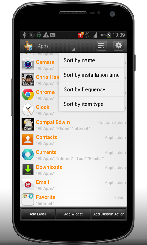 Your phone is packed with hundred of APPS? Use Smart Taskbar to create label to group them by function/usage/location.. whatever you like.