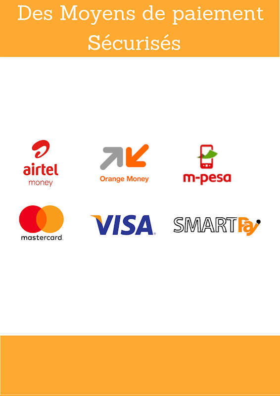 - Des moyens de paiement locaux (Airtel money, orange money, M-pesa)