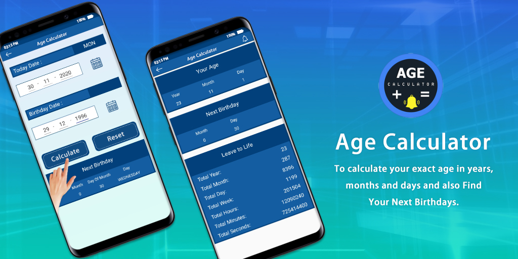 Calculate your exact age from the current date.You can set notification of your different events such as Birthday,Anniversary,Appoinment.