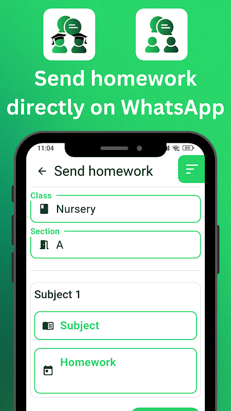 - Comunicazione senza soluzione di continuità: l'app facilita la comunicazione tra il personale scolastico e i genitori attraverso l'integrazione di WhatsApp. Rimani connesso con aggiornamenti in tempo reale riguardanti presenze, compiti e annunci importanti.