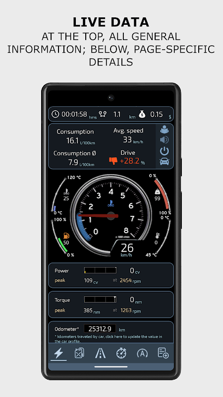 Dati live completi: RPM, temperature, consumo istantaneo, tensione batteria