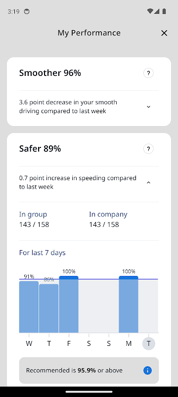 Controlla i viaggi del tuo veicolo e il tuo comportamento di guida, sincronizzati automaticamente con il tuo dispositivo di localizzazione. Con pochi semplici clic potrai sottoporre i tuoi viaggi classificati o gli assegni dei veicoli commerciali direttamente al tuo gestore.
