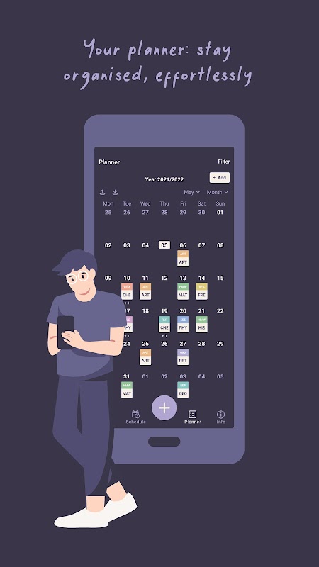 L'app legge i codici di 3 lettere sull'agenda del tuo notebook, importando tutte le nuove attività nel tuo smartphone. Ti invia anche notifiche tempestive per studiare per esami, fare i compiti e molto altro.