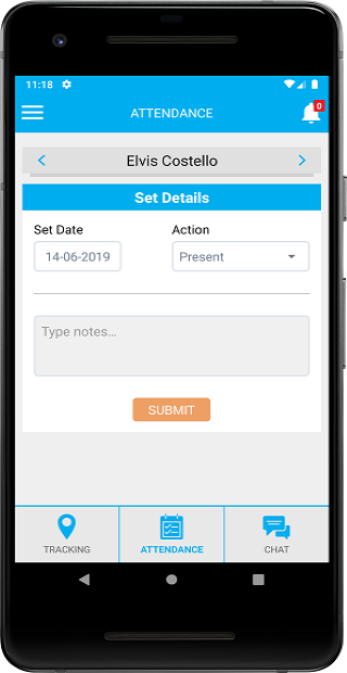 Parents can send a notification about his children attendance status (absent, delivered lately to the school and wants the bus to take the children home, picked from the school early).