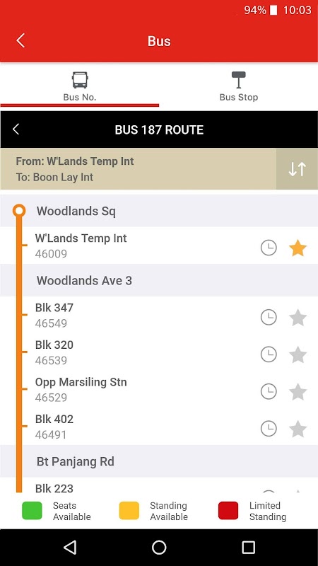 - Tempi di arrivo in tempo reale per i treni SMRT e tutti gli operatori di autobus