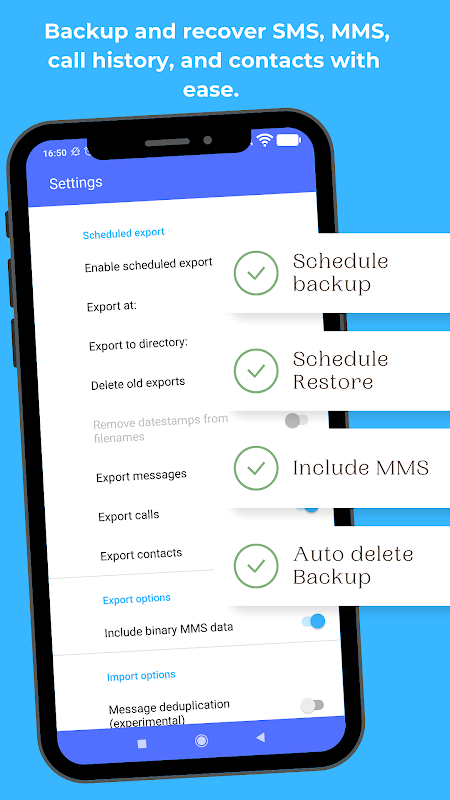 Trasferimento e importazione facili: esporta il backup in altri dispositivi telefonici.