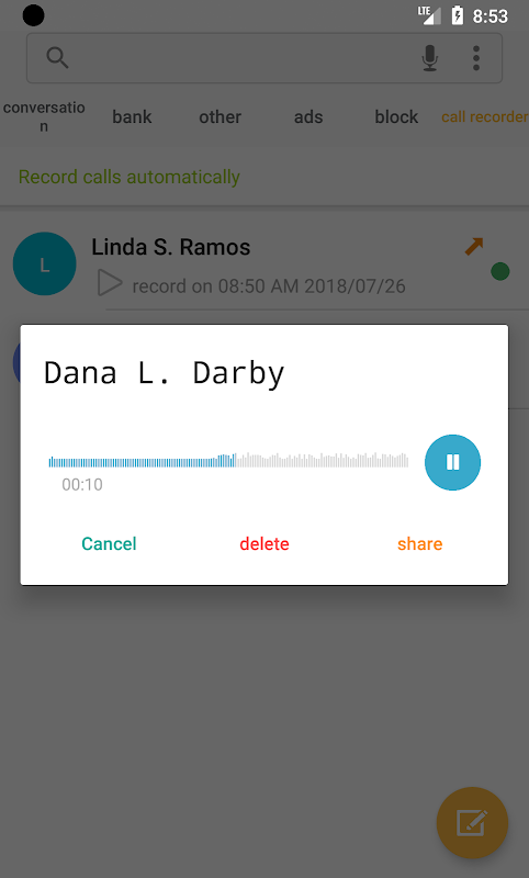 Registra le chiamate telefoniche automaticamente o manualmente.