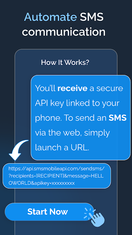Prendi il controllo della tua comunicazione con SMS Mobile API — la soluzione SMS API all-in-one che consente ad aziende e privati di inviare e ricevere SMS direttamente dal proprio telefono Android tramite una semplice API.