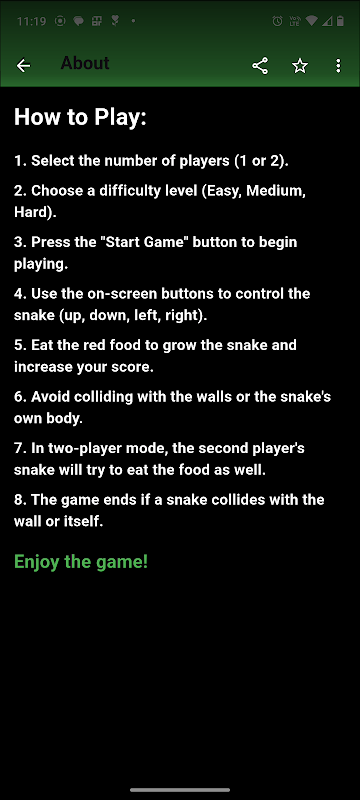 Preparati per una svolta moderna e gratuita del classico gioco Snake! Controlla il tuo serpente, mangia cibo per crescere e mettiti alla prova in modalità giocatore singolo o a 2 giocatori contro un intelligente avversario IA. Scegli il tuo livello di difficoltà, affina le tue abilità e vedi se riesci a superare in astuzia il computer. Con controlli intuitivi, gameplay fluido e grafica vivace, questo gioco Snake gratuito offre intrattenimento infinito per giocatori di tutte le età. Tieni traccia dei tuoi punteggi più alti, goditi effetti sonori accattivanti e diventa il campione Snake definitivo! Gioca a Snake online, il classico gameplay di Snake, un avvincente gioco arcade, multiplayer di Snake con IA, download gratuito di Snake.