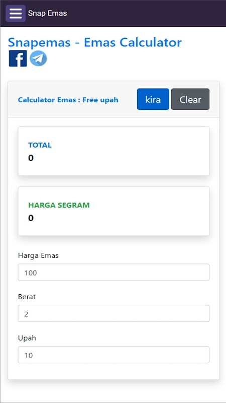 Questo è un calcolatore per calcolare il prezzo al grammo (RM / g) dell'oro