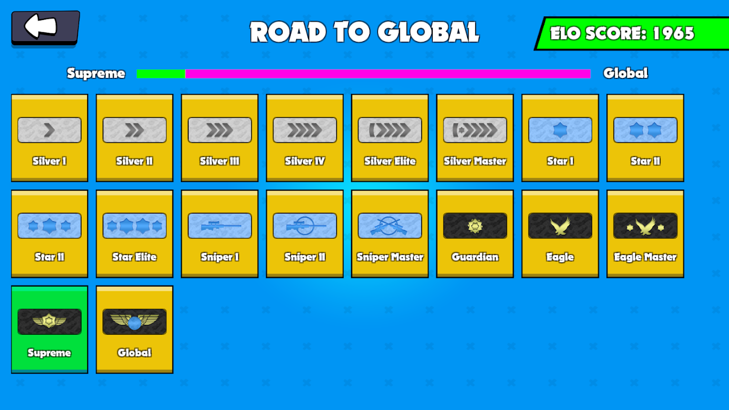 Sniper.io è uno dei giochi più competitivi tra i nuovi giochi io. Il sistema di matchmaking ti abbina ai cecchini in base al tuo punteggio elo. Man mano che il tuo punteggio elo aumenta, incontrerai avversari più impegnativi.