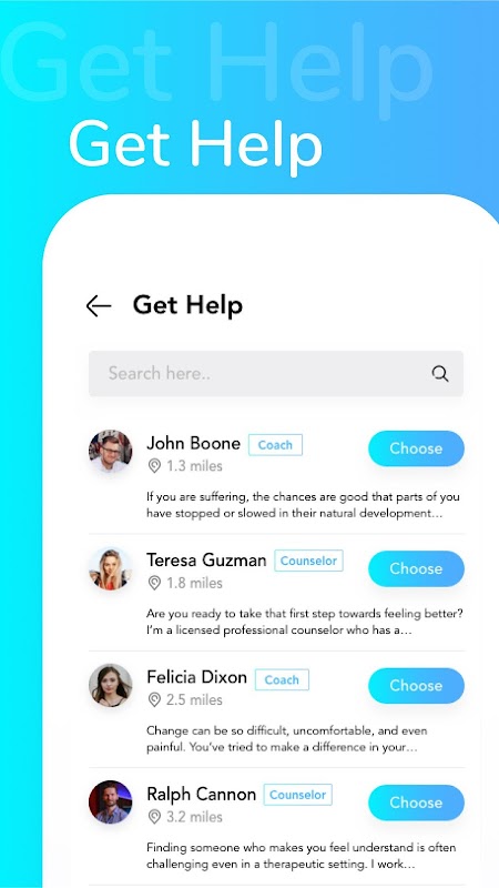 L'app paziente offre una connessione mobile e su richiesta con il proprio provider e fornisce la responsabilità in tempo reale con gli impegni e la geo-fencing richiesti. Promuove inoltre il sostegno e l'impegno di colleghi, familiari e amici.