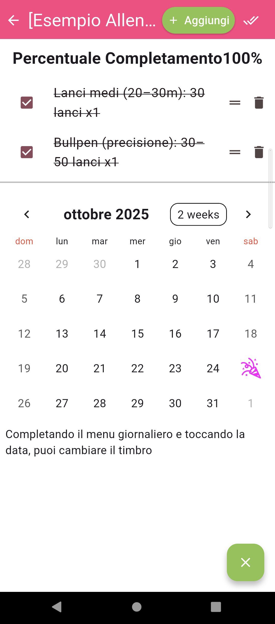 Dal miniagli adulti: gestisci allenamenti con checklist, reset e calendario