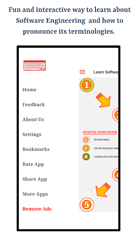 L'app ti aiuterà a imparare la pronuncia corretta delle terminologie utilizzate nell'ingegneria del software utilizzando la lingua inglese. Di seguito sono riportate le funzionalità principali di questa app