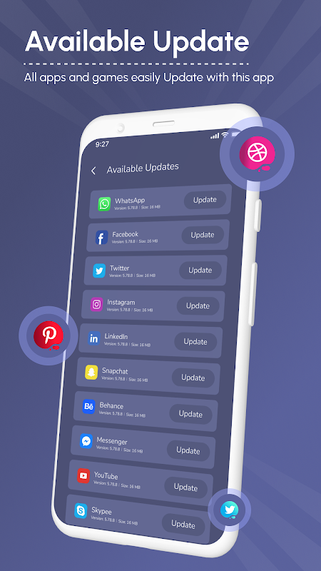 Sperimenta un'interfaccia intuitiva che trasforma il processo di aggiornamento. Elimina la necessità di controlli ripetitivi sul Play Store. Gestisci facilmente gli aggiornamenti per più app, assicurando che il tuo dispositivo funzioni sempre in modo ottimale.