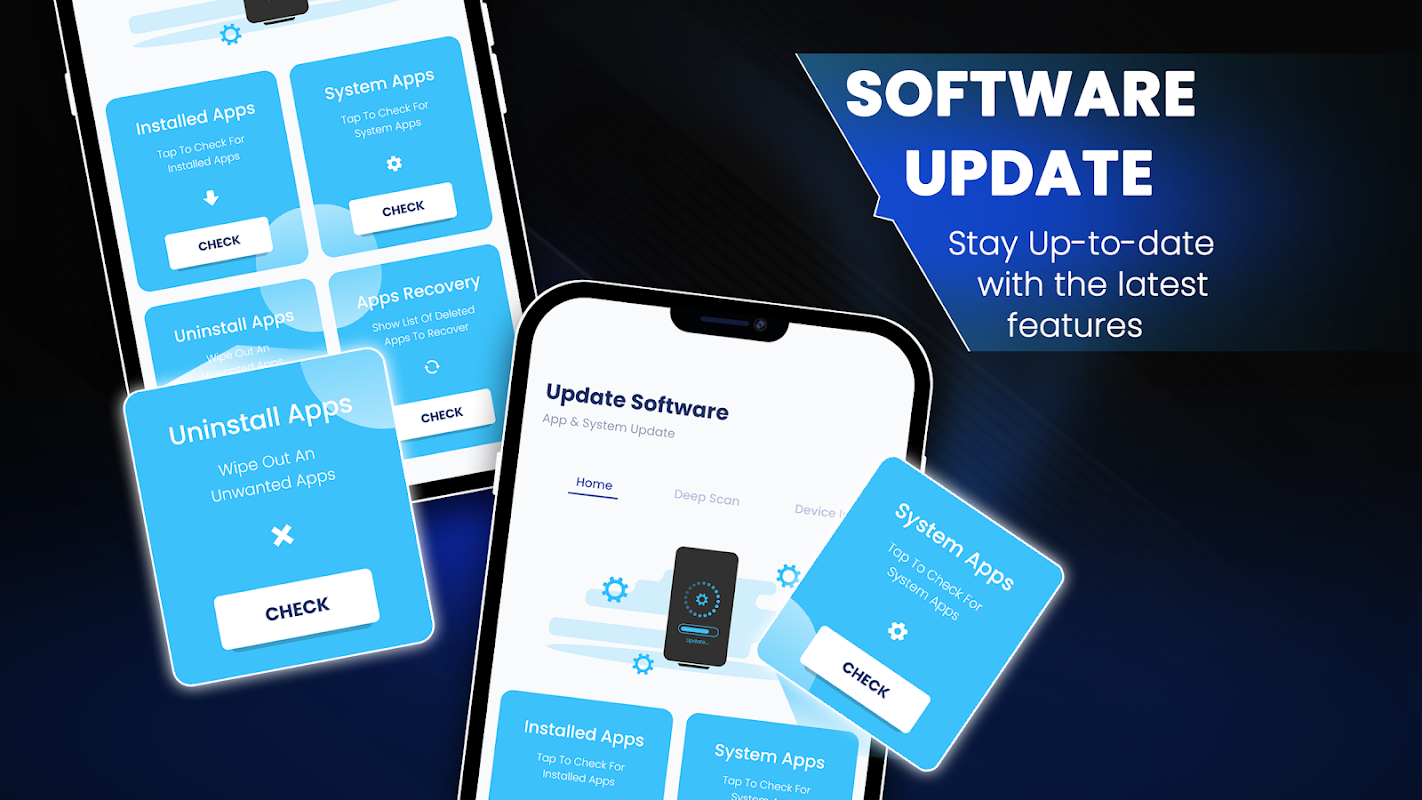 Stai cercando un'app che abbia tutte le funzionalità per aggiornare il tuo telefono? Non c'è bisogno di preoccuparsi, hai fatto la scelta giusta selezionando l'app per il controllo degli aggiornamenti software. L'aggiornamento del software più recente è la soluzione a tutti i tuoi problemi. Con la guida per l'aggiornamento del software multi strumento Android, puoi eliminare le app indesiderate dal tuo telefono con il programma di disinstallazione delle app. L'aggiornamento software per il mio telefono è ora disponibile e facile da usare, per mantenere il telefono aggiornato. L'aggiornamento software per il mio telefono è ora disponibile e facile da usare, per mantenere il telefono aggiornato. Puoi ottenere tutti i dettagli delle tue app in pochi secondi, utilizzare l'app del software di aggiornamento del telefono per scansionare tutte le app scaricate e di sistema e rimanere aggiornato.