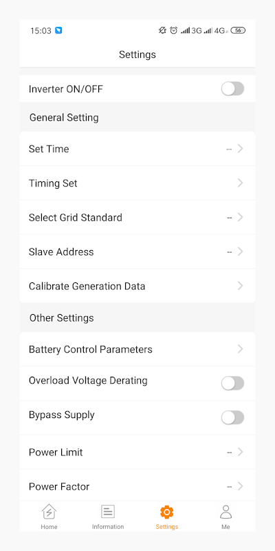 L'utente principale di Solis APP è l'installatore, può comunicare con Inverter WiFi e realizzare alcune funzioni come controllo dispositivo, controllo e impostazione parametri, controllo inverter, aggiornamento inverter, allarmi, ecc.