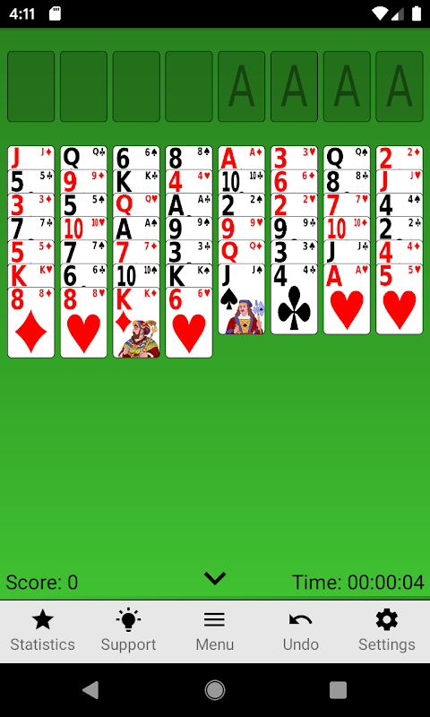 Eight columns of cards await your attempts to clear them with the fewest moves possible. Start out playing with a single suit until you’re comfortable, and then see how you fare when using two or even all four suits in a game.