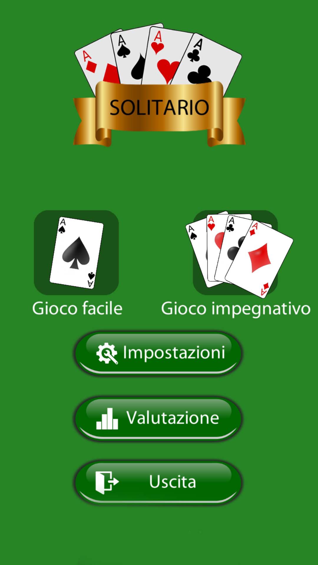 Il solitario è un gioco classico con un mazzo di 52 carte, che inizia con un asso e termina con un re. È noto anche come Klondike o Solitario.