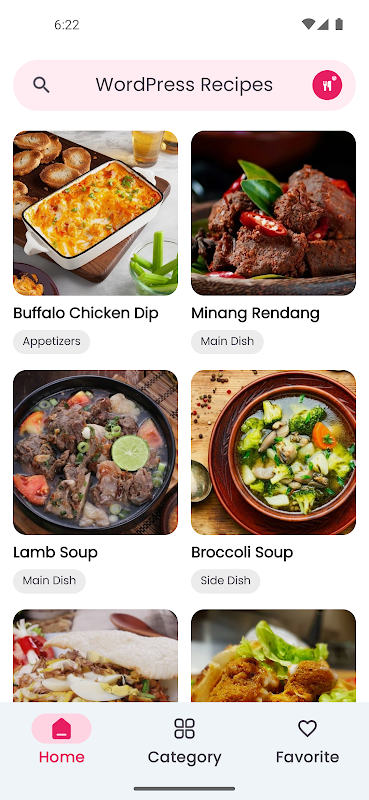 Applicazione per la visualizzazione del contenuto della ricetta utilizzando l'API WP Rest