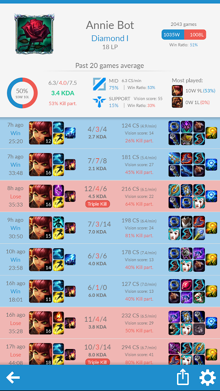 Download this great tracker app to stay on the top of the League of legends solo queue ladder.