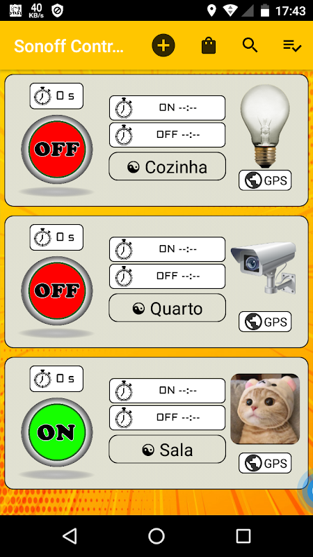Un'ottima app per gestire il tuo dispositivo connesso con energia. Con questa applicazione è possibile controllare qualsiasi apparecchiatura collegata all'alimentazione elettrica per la funzionalità di accensione e spegnimento. L'operazione avviene tramite la rete locale WI-FI, quindi per un buon funzionamento lasciare sempre collegato il router, quando il router è scollegato, l'apparecchiatura collegata a Sonoff si spegne automaticamente.
