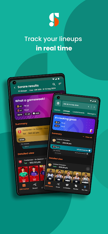 Scarica l'app per gestire la tua iscrizione, guarda le informazioni dettagliate sulla partita con le statistiche dei giocatori, inclusi i punti fantasia suddivisi per punteggi decisivi e a tutto tondo. L'app include anche lo scouting dei giocatori e strumenti di mercato per aiutare i manager di Sorare a scoprire quali carte dei giocatori potrebbero voler acquistare e vedere i valori di mercato di quelle carte in tutte le scarsità.