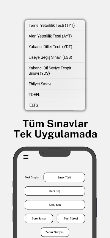 (YKS) Risolvi test per TYT, AYT, YDT, YDS, esami Patente, impara, raggiungi l'obiettivo