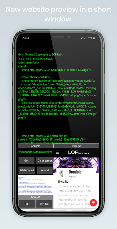 Questa applicazione ti consente di visualizzare il codice sorgente di qualsiasi sito Web esistente semplicemente digitando l'URL.App creata da Dominic Walter per LOF Labs
