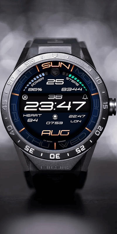 Questo quadrante supporta tutti i dispositivi Wear OS con livello API 30+ come, Pixel Watch, Fossil, Samsung Galaxy Watch 4, 5, 6, 7, Tag Heuer Connected ecc.