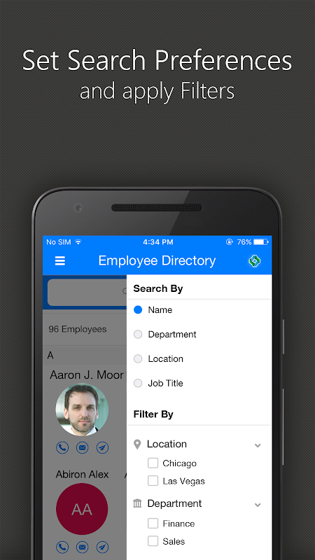 L'app mobile Intranet SP offre un accesso rapido e semplice a tutte le informazioni di contatto dei dipendenti dell'organizzazione a portata di mano.