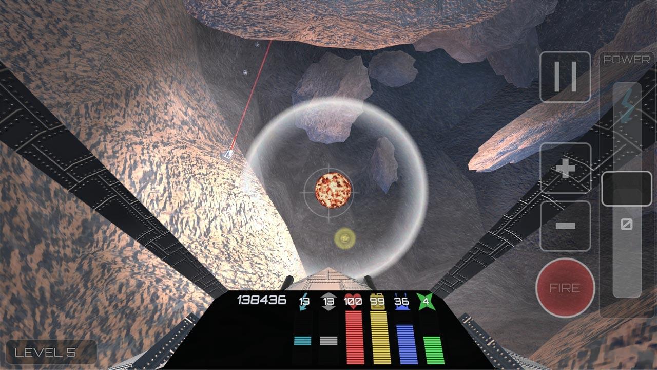 sparatutto spaziale in 3D all'interno di un grande labirinto grotta tra cui asteroidi e molte cose buone e cattive.