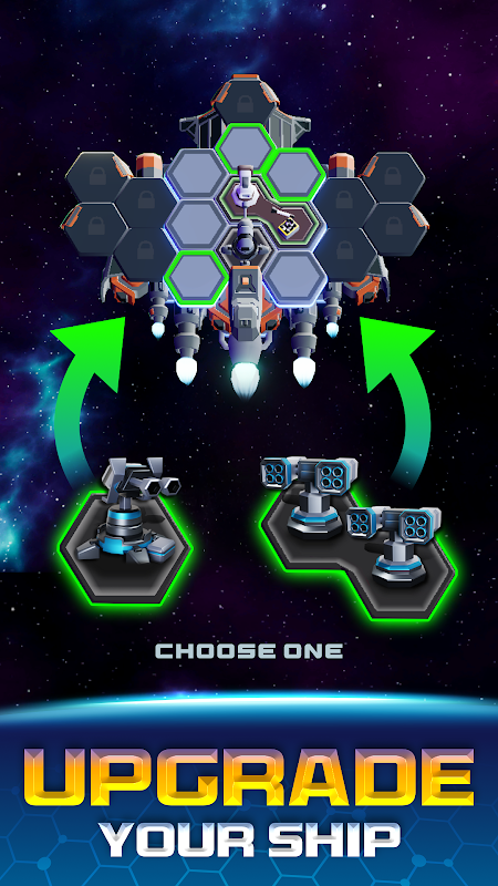 Space Hex: War Merge Shooter combina elementi di gioco di ruolo nella costruzione navale con il brivido dell'azione sparatutto d'attacco casuale nella fase di combattimento, creando un'esperienza di gioco dinamica. Personalizza la nave del tuo eroe galattico per riflettere le tue decisioni strategiche e fatti strada verso la vittoria nelle competizioni di campionato in questo gioco sparatutto galattico di prim'ordine.