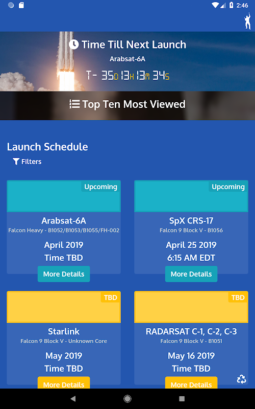 - View detailed information from past, present, and future launches