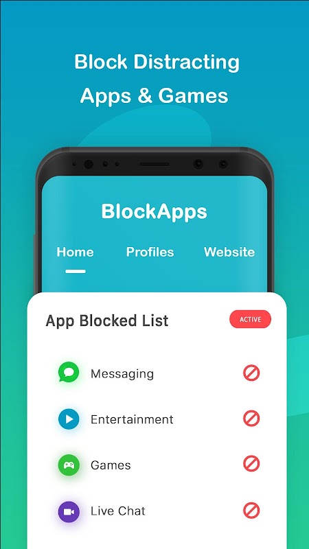 Utilizzando questo blocco app e blocco siti Web di spam, l'utente può bloccare più app insieme aggiungendole ai profili. Gli utenti possono creare profili specifici in base alle categorie di app come social media, finanza, giochi, ecc.