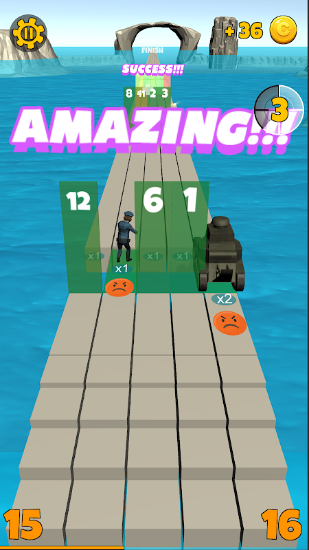 Aggiungi unità di tiro, rompi blocchi e raggiungi il traguardo.