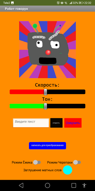 È possibile regolare la velocità e il tono del robot. Puoi esprimere non solo parole, ma anche numeri. In qualsiasi lingua.