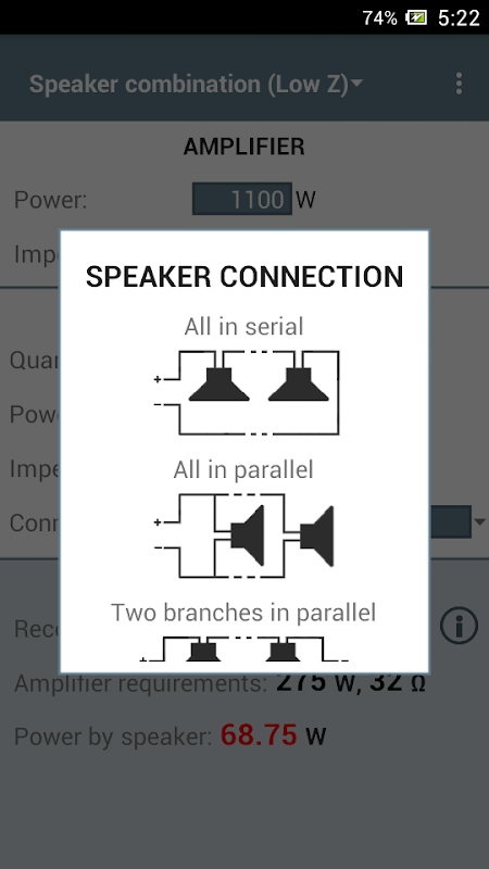 Strumento di calcolo per le linee ad alta o bassa impedenza degli altoparlanti.