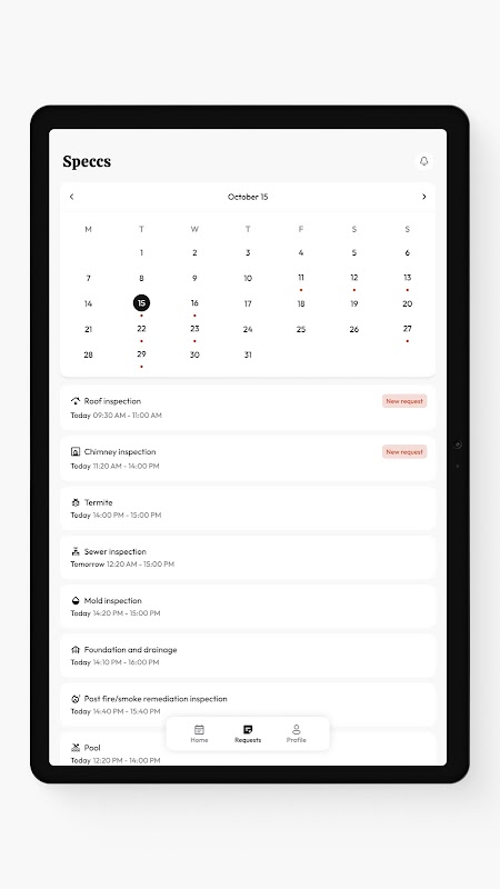 Speccs è il modo veloce e semplice per mettere in contatto proprietari di case e aziende con ispettori certificati. Che tu abbia bisogno di un'ispezione domestica o edilizia, Speccs semplifica la richiesta, la pianificazione e la gestione di tutto in un unico posto. Gli ispettori possono accettare rapidamente lavori, comunicare con i clienti e semplificare il flusso di lavoro, il tutto tramite un'app intuitiva.