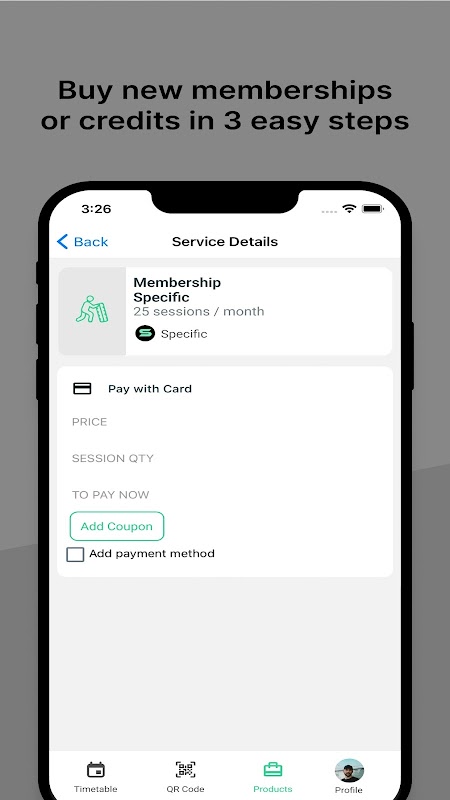Prenota sessioni e gestisci gli abbonamenti in un unico posto con l'app specifica