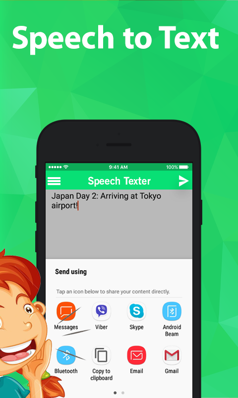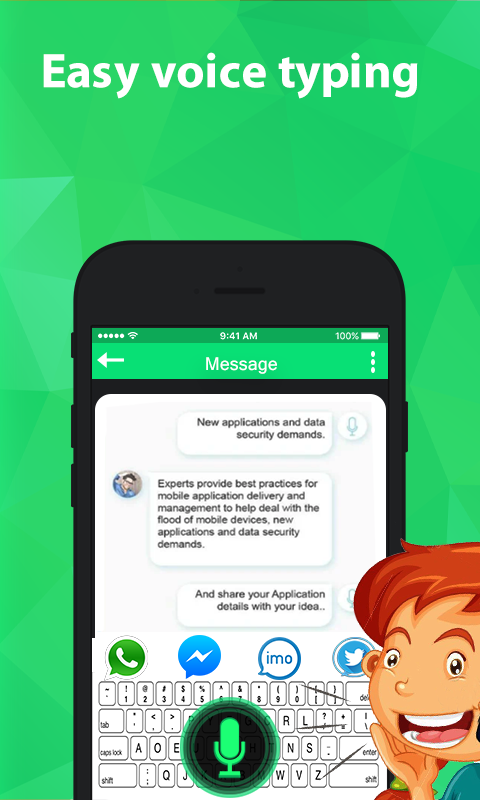 Converti la tua voce in testo con Elenco testo Speech - to - Note, Questo ti permetterà di condividere i tuoi messaggi di testo con Whatsapp, Facebook, Messaggi, Instagram, Messanger, Hangouts e Gmail. L'obiettivo di Voice to text converter - parla con l'app delle note è darti un modo semplice e semplice per inviare messaggi di testo con la tua voce. Un messaggio potrebbe essere una forma di sms da inviare ai telefoni cellulari dei tuoi cari con un pensiero adorabile che invoca i tuoi sentimenti ed espressioni. È una cosa che dura così tanto tempo. Tutti i messaggi sono desiderati, i caratteri sono delle dimensioni perfette da condividere con gli amici o i tuoi cari via sms. Scrivere Sms By Voice ti rende più comodo per mandare SMS ai messaggi usando la voce.