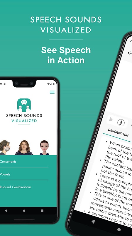 • Alterna tra animazioni 3D o immagini a raggi X per tutti i suoni dell'alfabeto fonetico inglese