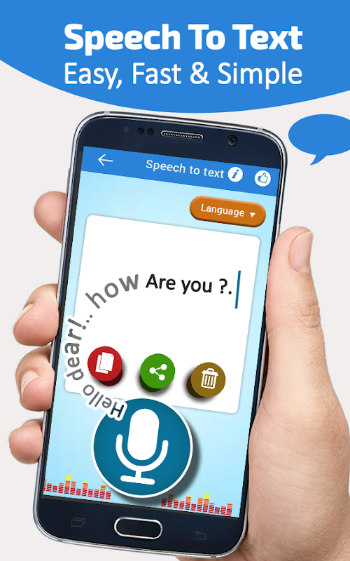 Communicate in any language with speech to text converter which enables to communicate in voice with others. Speak to type and then share the text to any social platform it’s very easy to use app for dictating text which can be sent as an SMS or Email or can share anywhere.