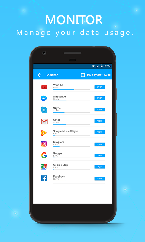Don’t let your phone battery go down. Extend your battery life using Battery saver that stops power draining apps from Use, Monitor battery status, provides accurate battery remaining time/charge time, Switch in between various power saving modes or customize your own mode.