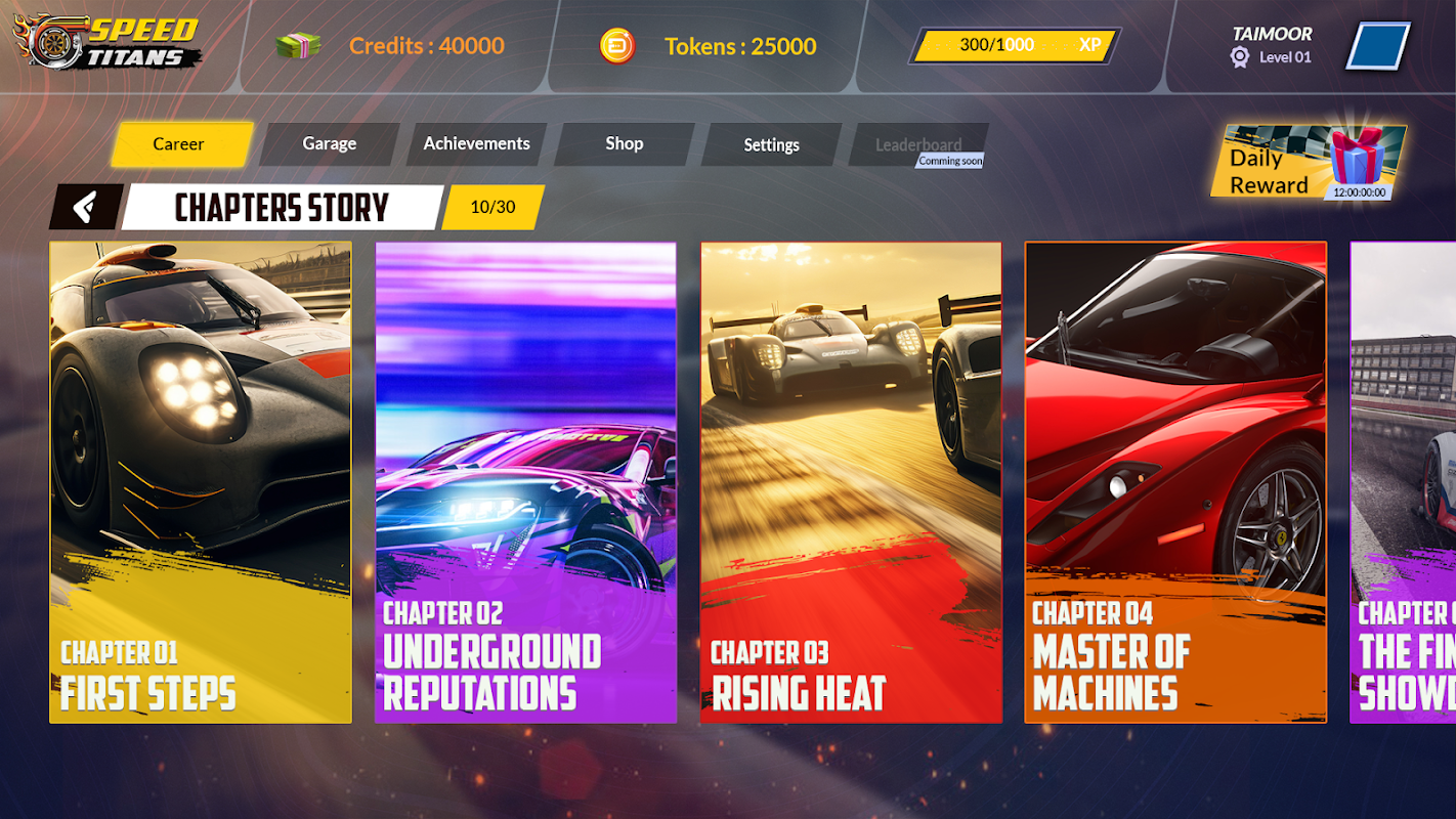 Speed Titans Racing ti catapulta in un'azione arcade adrenalinica! Scegli tra decine di veicoli ad alte prestazioni: eleganti supercar, classiche muscle car, futuristiche hot rod e altro ancora, ciascuno completamente personalizzabile. Scendi in pista a una velocità incredibile, derapando dietro le curve e superando gli avversari. Metti a punto ogni parte della tua corsa, dai motori e pneumatici ai booster nitro e alle verniciature personalizzate, per costruire la macchina da corsa definitiva.