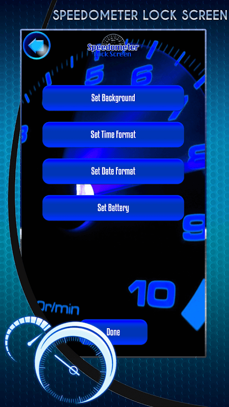 Apri l'applicazione per il locker di sfondi hd Tachimetro Blocca Schermo.