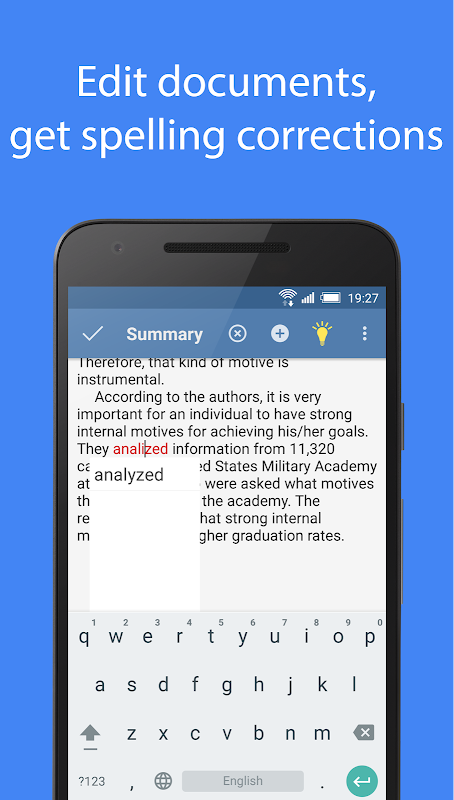 Offline spell checker notepad for Android. Check and improve your spelling with Spell Checker.