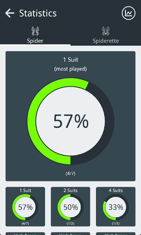 ♠ Due giochi in uno: gioca a Spider o Spiderette, una versione più semplice del gioco con meno carte e colonne.