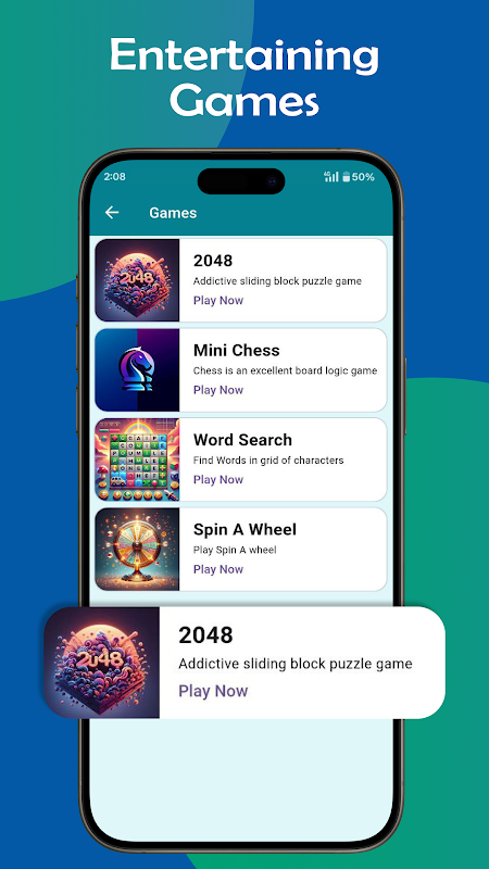 This collection of fun mini-games—like 2048, Chess, and spins.