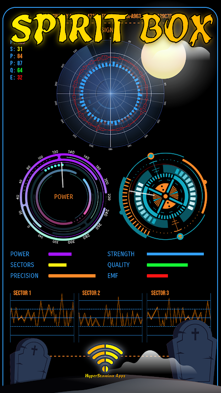 Include tutti i tipi di informazioni simulate in tempo reale che mostrano dati come la potenza del segnale, 3 settori di controllo del comunicatore spirituale, la precisione del segnale SpiritBox e la forza del rivelatore fantasma, la qualità del segnale radar fantasma e simula anche le forze elettromagnetiche rilevate. Ghost Detector and Communicator è un'applicazione di intrattenimento che include un radar Ghost e Spirit che simula le psicofonie di un rivelatore e che è possibile scaricare gratuitamente.